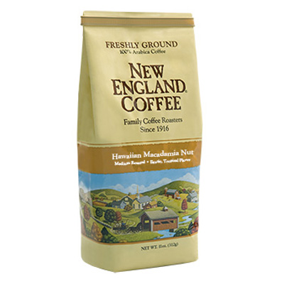 Packaging image for New England Coffee's Hawaiian Macadamia Nut flavored coffee