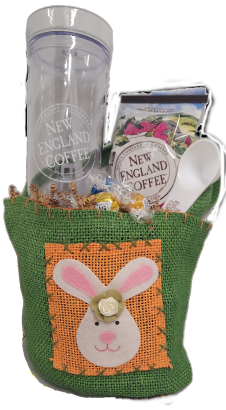 Hop in to Spring with our new Bunny Basket. This gift set features your choice of New England Coffee, an iced tumbler and a signature coffee scoop.