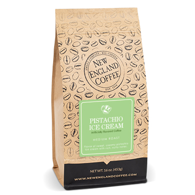 Pistachio ice cream coffee from New England coffee is my favorite flavored coffee. It is truly delicious. I always have at least a couple of bags in stock at the house to make sure that I never run out. This one is a must have. If I could, I would give it 10 stars. Bravo New England, coffee roasters.