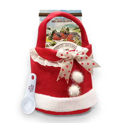 Spread some joyful holiday cheer with a Santa Skirt Gift Set. This gift set features your choice of New England Coffee and a signature coffee scoop.