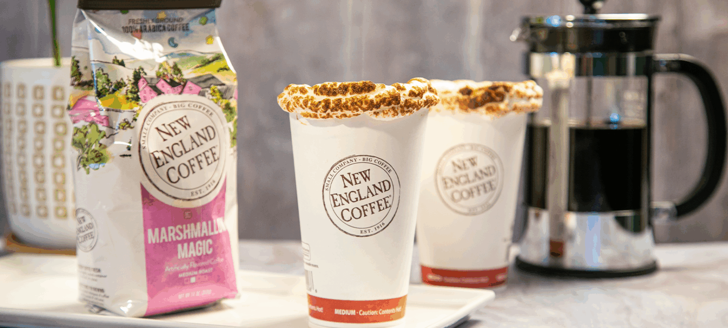 Transfer the fluff to a piping bag fitted with a large plain tip. Pipe the fluff around the rim of the mug or glass or on top of the drink itself. To caramelize, apply a kitchen torch a few inches away from the fluff and move it in a quick, sweeping motion across the fluff until the peaks of the fluff caramelize and turn a light brown.